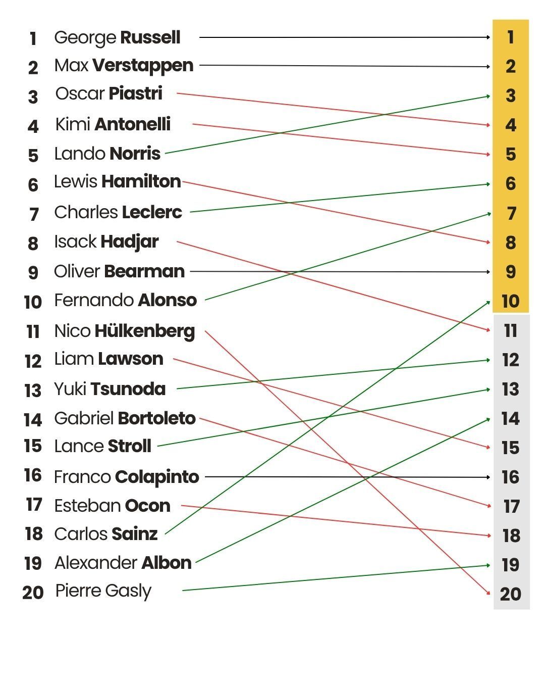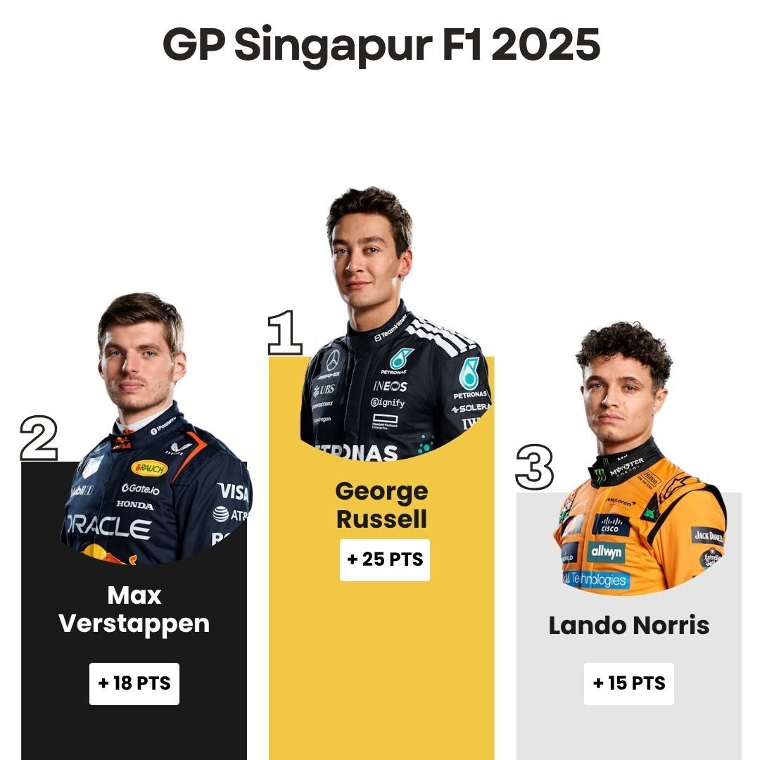 Ya te imaginarás el humor de Piastri, que por cierto, más adelante hablaremos de lo que le hizo a su equipo.Russell mantuvo el control de la carrera en todo momento, nunca tuvo algún peligro de perder la primera posición en el podio
